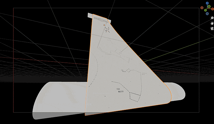Inicialmente se experimentó con técnicas de animación para dar vida al papel de la máquina, cercanas al stop motion y al ASCII ART (animación con carácteres ASCII). Sin embargo, finalmente se optó por un camino más mínimo y orgánico: animar únicamente en base al giro de un rodillo de máquina de escribir, el cual avanza revelando el título, los créditos y ciertos elementos decorativos propios de la navegación astronómica.